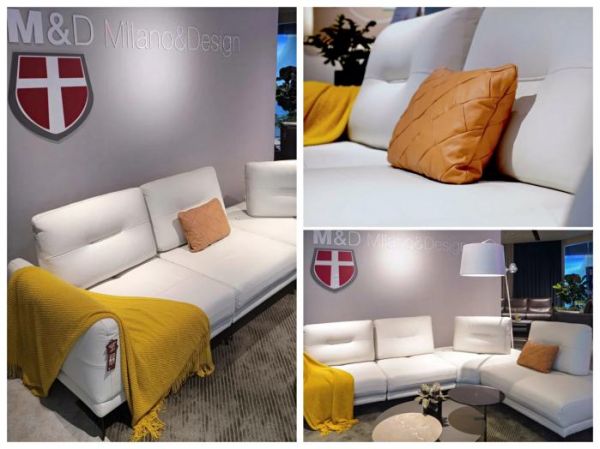 M&D意式皮沙发,他们家沙发既可大气低奢又可慵懒治愈,这款休闲生活空间系列主题的亮白色牛皮沙发,温馨简约还带转角位,很适合现代奶油风装修的家庭。