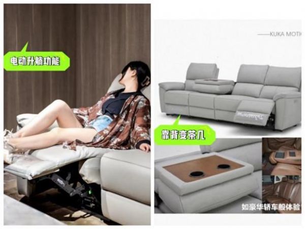 KUKA顾家沙发还有一款“翻倒几”功能的三人位功能皮沙发,电动升躺功能角度可达108-160°,沙发靠背秒变茶几,侧面设置简洁功能键和USB接口,带给人如豪华轿车般的坐感体验。