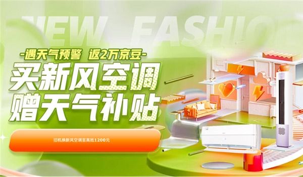 在近期京东家电开启的新风空调节活动中,旧空调换新风空调至少抵300元,至高抵1200元,同时换新新风空调还有“天气预警补贴”。活动期内,在京东购买指定型号的新风空调,赠天气预警补贴,在规定时间内空调安装,且下单城市出现天气预警,可获得价值200元的京豆补贴。