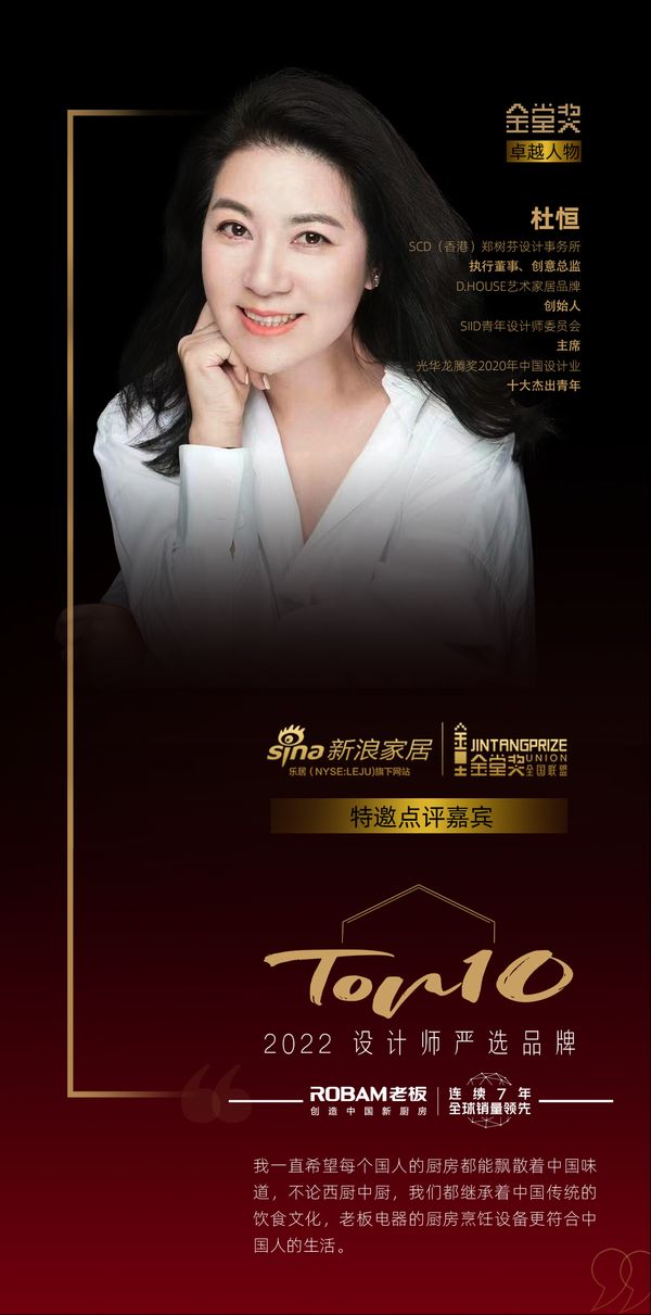 近日,由新浪家居联合金堂奖全国联盟共同发起的「2022 设计师严选品牌 TOP10」活动重磅启动,活动汇集了全国两岸三地数十位设计大咖担纲特邀点评嘉宾,并邀请全国千余名卓越青年设计师担任推荐官,将以设计师专业视角,甄选出服务于设计师及业主的高品质制造品牌。老板电器荣膺「2022 设计师严选品牌TOP 10」称号。