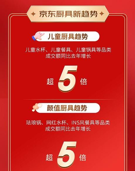 在此次京东新百货“吃喝有具”超级品类日购物热潮中,高颜值、儿童、降温消暑、户外运动成厨具购物关键词,厨具消费朝着更个性化、细分化的方向发展。