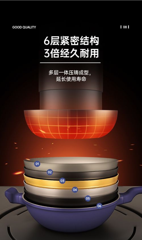炊大皇全能锅为多层一体压铸成型,并在6倍紧密结构的加持下,提升锅具质量。其品牌自研的微压聚能设计,能在锅内形成热气循环,让炒锅变炖锅,解决消费者在烹饪时需要不停换锅的麻烦。