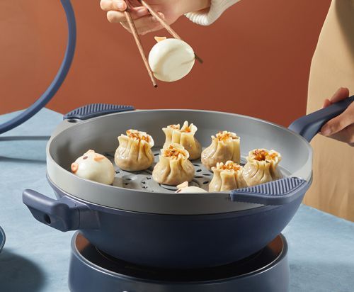 据公开资料显示,炊大皇全能锅可一锅六用,其不粘锅面、微压聚能以及可拆卸蒸格设计适用于煎炒蒸炸炖煮等多个烹饪场景。