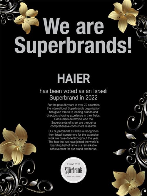 中国唯一!海尔以色列获“2022年超级品牌”奖