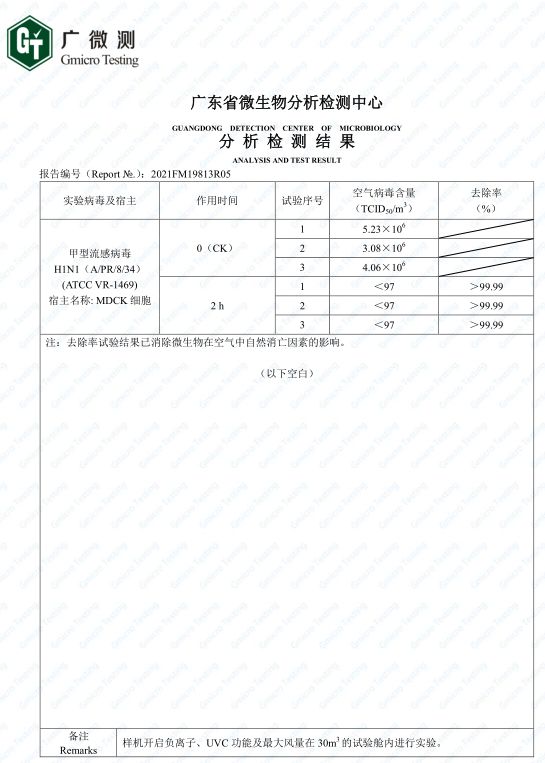 空气净化器采用波段在275-285nm左右的纳米深紫外线波段杀菌,能够破坏微生物(包括细菌、病毒和病原体)的DNA或RNA遗传物质,通过阻断其繁殖来实现灭菌效果,除菌率高达99.99%。附上广微所分析检测结果。