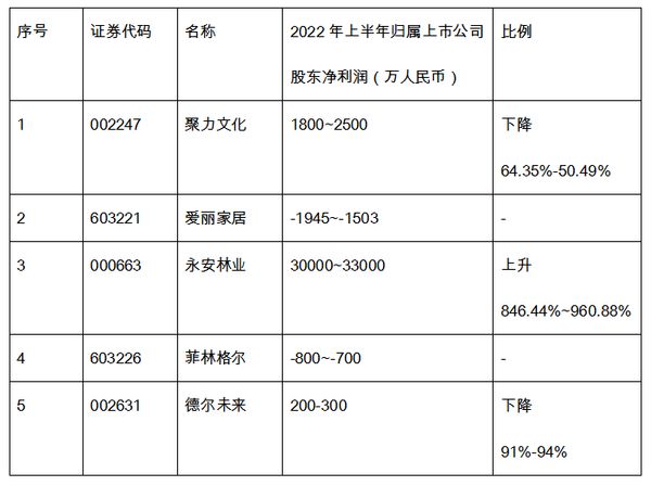 近日,地板类上市公司2022年上半年业绩预告释出。