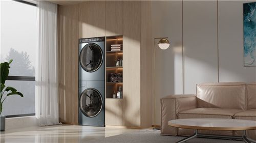 在洗衣服的过程中,用户只需将脏衣服放进洗衣机,通过一个屏幕控制洗、烘全流程,不需要单独控制洗衣、烘干程序,还能实现洗烘联动的智慧体验。比如下筒在洗涤结束前15分钟会提前把上筒的干衣机启动,提前预热,提升烘干效率。