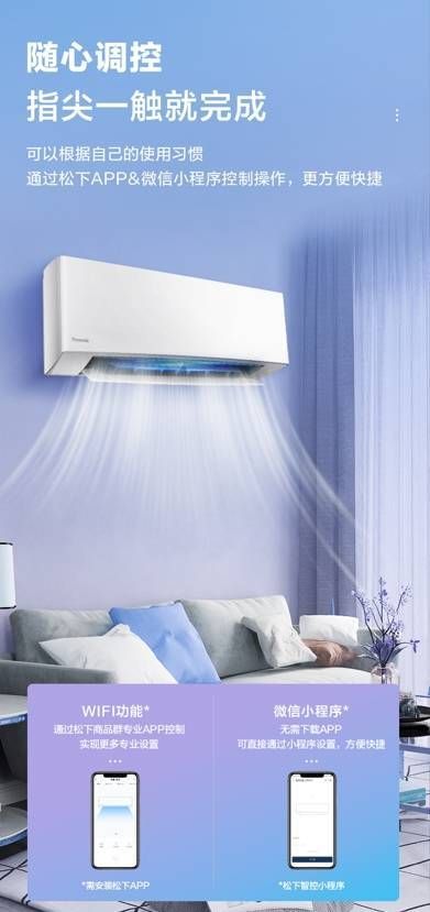 除了自清洁、强劲制冷功能外,在智能物联上,松下R1/R3滢风系列空调配有松下智能家电APP和松下空调智控小程序,可实现远程操控,轻轻松松把空调装进手机中,让用户体验智慧畅联的优智生活。不仅如此,柔湿制冷技术,平衡肌肤温湿;睡眠模式、(部分型号)120°广角左右自动送风等贴心设计,从细节处优化用户体验。