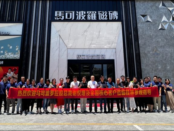 谢总及全国经销服务商代表一行在桂林马可波罗团队的陪同下参观走访了桂林马可波罗瓷砖联坤店。参观过程中,谢总对桂林马可波罗团队的饱满士气、服务热情给予了高度赞赏,并对终端设计建设效率与店面展示效果给予了充分认可。