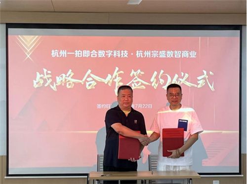 7月22日,宗盛数智商业(杭州)有限公司与杭州一拍即合数字科技有限公司战略合作签约仪式在杭州湾智慧谷举行,双方就公司股权转让、企业融资合作、招商渠道拓展等方面达成战略合作共识。宗盛数智总裁、华浙教育科技研究院院长吴坚,一拍即合创始人、董事长周建中,以及双方管理团队领导、代表共同出席了本次签约仪式。