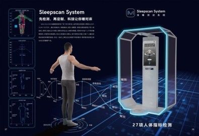 MAX COLCHON深睡密码研发了专门针对亚洲人身形特征和使用习惯的Sleepscan System ,通过采集BMI、脊椎曲线、体型、肩颧距、颈部支撑高度等27项人体指标,获得三维点云分布图,用算法孪生出人体数字模型,同时针对每个人不同的睡眠需求,匹配样本数据库,经过大数据及 AI算法,进行定制化匹配床垫和枕头。