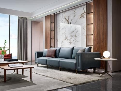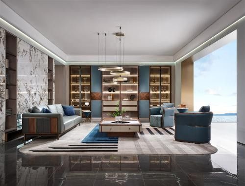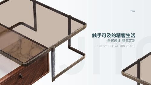 ● 在材质上,大胆引入新材料,将胡桃木与真皮、天然大理石、金属、岩板、玻璃、布艺等巧妙搭配,让产品在舒适之余更不失时尚气质。