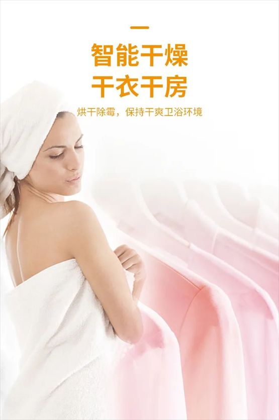 氧爸爸智能干燥功能,有效抑制霉菌滋生,解决浴室夏日潮湿闷热的问题,在卫浴间轻松实现干衣,干发,干身,干爽的环境!为用户带来更好的体验!