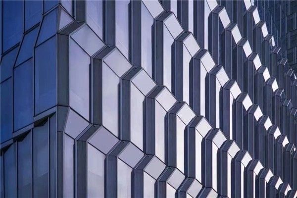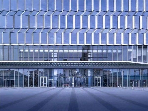 同时,建筑的外立面也迎合了青岛作为海滨城市独特的地域特征为设计灵感,使用立体幕墙的波动图形制造出海面涟漪的视觉效果。非主要界面则设计了更为简单的平面幕墙,与立体幕墙动静结合。立面中一定比例的金属幕墙中设置了隐藏式开窗,使建筑质感更加丰富的同时满足了自然通风的需求。