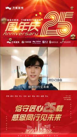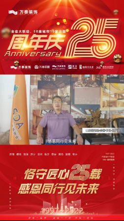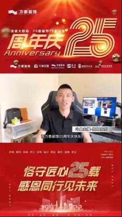 与此同时,中装协住宅产业分会胡亚南女士、山东装饰协会秘书长申广勇先生特别为万泰25周年送出祝福。万泰明星客户斗鱼游戏主播旭旭宝宝、抖音主播翟北北及业主代表也相继发来祝福视频,为万泰25周年助力赋能,他们因为选择万泰装饰而拥有了美好家装,品质生活。在25周年庆来临之际,万泰装饰也以更优质的家装服务,更专业的家装设计、施工、售后,来回馈广大客户的信任。