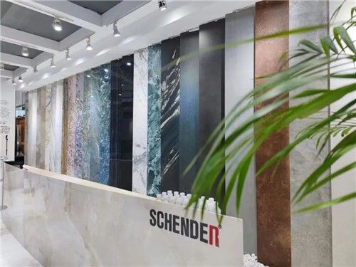 亮面理石系列拥不少优势:性能升级、超强防滑,美感升级、极致连纹,设备升级、超平超亮,工艺升级、全真通体。以国际的视角引领流行趋势,其展出的阿拉斯蔚蓝和乔木涟漪两款1200×2780mm产品让人眼前一亮。以新自然主义“品质、自然、舒适”的价值展出了900×2700mm工艺面/艺术岩板,应用干粒刷抛、复合柔抛、精微模具、精雕深刻等工艺技术还原产品自然纹理。