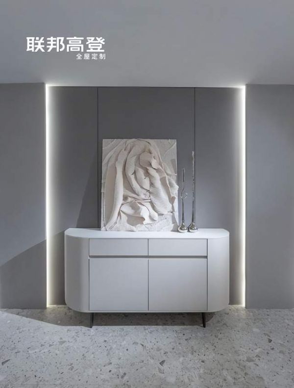 温婉装饰柜两边以圆弧设计收尾,搭配精致氛围艺术摆件,将浪漫灵动融入居家生活。