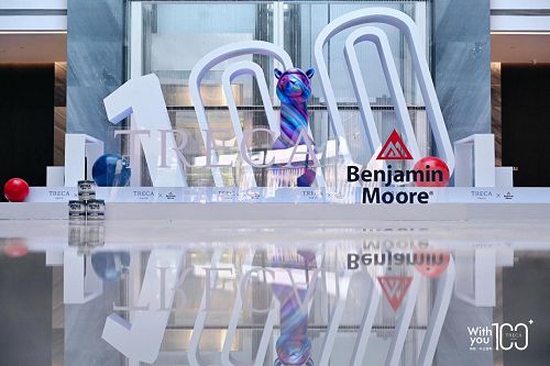 TRECA崔佧与Benjamin Moore本杰明摩尔都为拥有百年发展史的艺术品牌,战略合作仪式以“有你,不止百年”为主题,签到台及会场布置极具创意的“100”元素,充满艺术氛围的布置将两个艺术品牌完美融合。