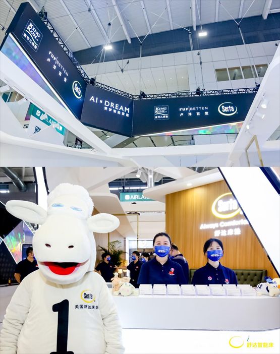位于6号馆的舒达床垫,呈几何立体造型,在光线照射下变幻出五彩斑斓的色彩,炫酷科技感十足!门口可爱的舒达羊雕塑,还有舒达羊人偶互动,受到参观人群的喜爱和热捧,纷纷前来参观并打卡拍照。展会首日,舒达展出的多款系列产品,就迎来大批参观人群驻足了解,并试睡体验,并对智能睡眠黑科技赞叹不已!