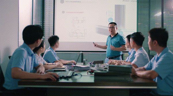 安格尔门窗董事长罗汉标带领研发团队