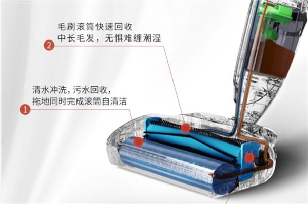 再次是干湿分离,干湿垃圾自分离,碎纸屑等干垃圾进入干垃圾盒,毛发缠绕到毛刷滚筒上,液体进污水箱,避免堵塞,用完分别倒入垃圾桶和水槽,好清理。