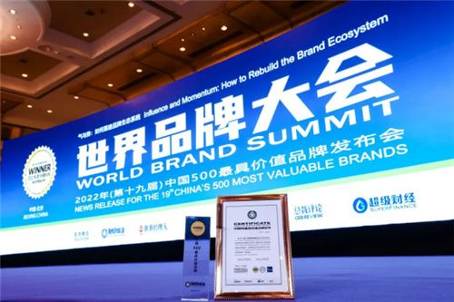 7月26日,2022年(第十九届)世界品牌大会暨中国500最具价值品牌发布会在北京隆重举行。国际权威品牌评审机构——世界品牌实验室(World Brand Lab)发布了2022年“中国500最具价值品牌”排行榜。