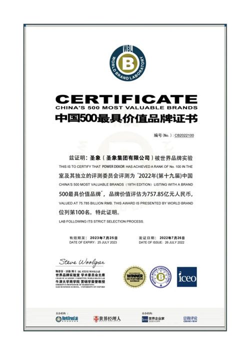 圣象再次蝉联中国500最具价值品牌,不仅是对圣象品牌价值和实力的高度肯定,更是对圣象在这一时期取得成果的一种认可。作为行业绝对的领先者,圣象将始终践行可持续发展道路,以活力塑造品牌年轻化,立足实业,科技创新,充分展示民族品牌的情怀与梦想,更好地塑造中国品牌价值,为早日实现人们“象”往的健康、美好的生活而不懈努力!