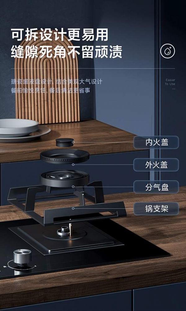 传统燃气灶焕新,往往意味着要对橱柜、灶台大动干戈,原有的燃气灶开孔尺寸无法适配新的燃气灶,导致无法直接安装,如果改孔,会影响厨房整体美观度。