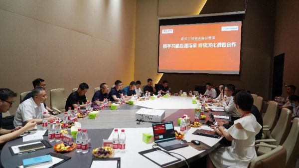 2022年7月26日,海尔智家副总裁/中国区总经理徐萌、中国区卡萨帝总经理宋照伟、中国区工程平台总经理肖慧、三翼鸟总经理张华军、中国区视听产业市场总经理喻木林、水联网中国区市场总经理郑伟、中国区主材渠道总经理罗杰、杭州分公司总经理杨光等高层领导莅临诺贝尔陶瓷总部进行交流指导,与诺贝尔陶瓷集团董事长骆水根、诺贝尔事业部总经理张杨、工程事业部总经理喻哲超、诺贝尔助理总裁刘兵毅、诺贝尔运营管理部总经理余约成、诺贝尔事业部运营总经理潘文元等公司高层领导展开战略合作的持续深化洽谈,双方剑锋所指高端生活场景的一体化打造。