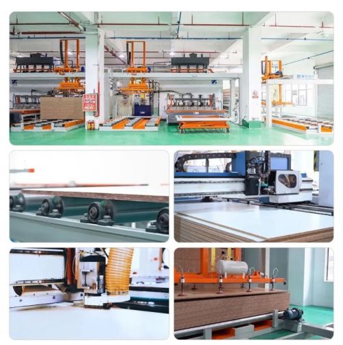 从智造力和设计力来看,爱阁工房建立了40000m²自主研发制造中心,拥有2000m²家居生活体验中心,自2003年成立至今,始终“以客户为中心”,坚持“精工品质、高质交付”的企业精神,引进德国豪迈生产设备,建立无尘压贴车间,形高度智能化的自动化产线,实现大规模非标准化定制生产;积极探索“5G+工业互联网”与实体经济的融合,推动企业数字化、网络化、智能化发展,利用酷家乐、德国WCC等软件,将设计、生产、交付环节打通,做到“所见即所得”,品质、交期双保证,提升终端竞争力。