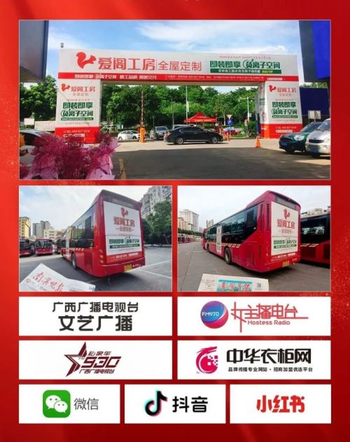 从传播力和营销力来看,爱阁工房执行品牌精准营销传播战略,以提升品牌形象,助力终端销售,整合户外、公交、电台、社区等广告投放,增强品牌自信。积极拓展微信、抖音、小红书等网络社交平台,不断丰富新零售渠道,多渠道、精准化人群触达,活动爆破,全网引流,多维度助力终端,为加盟商解决客流量低、获客成本高等问题,帮助门店创造更多营收。