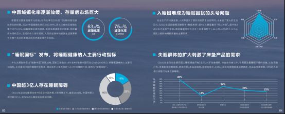 2022年5月出品《2022年国民睡眠洞察报告》数据表明:超4亿人披星戴月“网上冲浪”,超半数2点以后才会放下手机。国民睡眠时长在过去十年里缩短了1.44小时,67%的人认为心理压力是影响睡眠质量的主要因素。日益庞大的失眠大军,正在撑起一个规模达万亿元的巨大商机