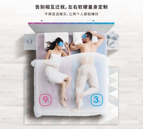 此外,MAX COLCHON深睡密码还发现大多数同床的夫妇都饱受因需要不同软硬舒适度床垫而相互迁就的困扰。经过MAX COLCHON深睡密码产品研发部多年的钻研,根据权威标准将床垫依据不同舒适维度(支撑力,回弹性,贴合度)分为1-10等级,为每位用户量身定制自身的软硬舒适度,同时在一张床上满足了左右软硬不同的需求。MAX COLCHON深睡密码产品研发经理说:“每个人都值得拥有一套量身定制,真正适合自己的睡眠产品。”