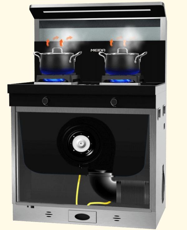 下置式蜗壳处在集成灶的下部,就像人的心脏一样置于人的脚下一般,相对于来说这种设计是比较怪异的。这种设计可以增加消毒柜和蒸烤箱的深度,这是值得肯定的。但是会造成不好清洗,不安全,高温高湿高压混合。消费者在使用和清洗中油和水就会长期存留在底部,这样电机就会泡在水里,这样就不太安全了。同时这种设计也不好维修,出现故障很难取出,遇到清理和维修只能望灶兴叹了。