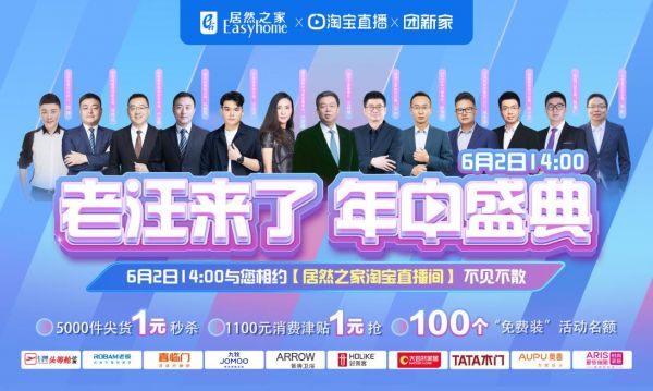 6月2日,居然之家联合芝华仕、老板电器、九牧、箭牌卫浴、好莱客、大自然地板、TATA木门、奥普、爱依瑞斯10大家居品牌推出年中大促让利活动,借助直播的最新潮营销模式,更有“箭牌好物商品1元限量秒杀不间断”和“10份“免费装”的超大福利”,实力宠粉直播间的每一个人,点燃家居行业消费热潮。