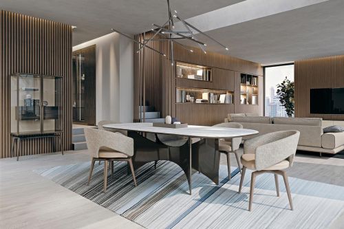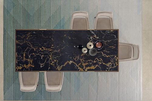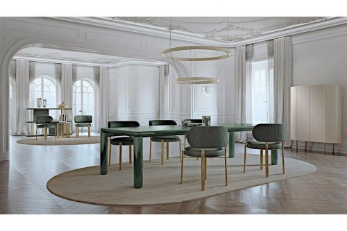宽大的长餐桌能随时为餐厅赢得更多瞩目,无论是平滑的木质台面还是大理石镶嵌,简洁有力的线条让它仿若一体成型。哑光金属桌腿凸显TURRI一贯的优雅气质,与同系列餐椅、餐边柜搭配,如行云流水般丝滑。