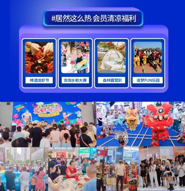除此之外,KPOP随机舞、啤酒龙虾节、泡泡水枪大战、沉浸式苗寨风情体验、夏夜露营音乐节、逐梦FUN乐园趣味亲子活动等会员福利活动也都于7月超燃呈现,8月还有海量明星如温兆伦、金志文、小阿七、旭日阳刚、黄阅等等与您相约居然,大咖云集的设计与家大型系列活动也期待您的参与!