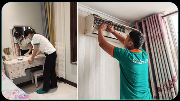 第二天,工作人员按照约定服务时间早早来到周女士家,周女士描述了大概需求,工作人员进行简单分工后依次对各个空间进行了保养。
