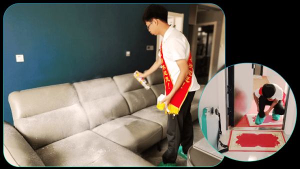 到达用户家里,小龙在和用户简单沟通保养需求后便开始熟练的操作起来,将皮革护理液均匀喷洒在沙发表面,静置一分钟后开始用白色毛巾轻轻擦拭,缝隙处再用吹风机慢慢清理......
