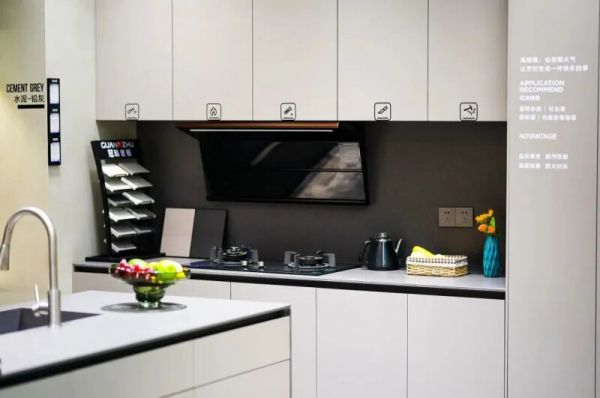不管是定制家具还是卫浴企业,关于岩板的应用均十分常见。陶瓷企业方面,与往年单纯的材料展示相比,今年,陶企在岩板展示方面更多强调落地服务方案,以终端的整体交付系统为主。这也意味着,关于岩板的市场争夺战将从生产端转移到服务端,有行业人士认为,岩板的应用范围、渠道广泛,对于陶企而言,针对不同的渠道打造量身的服务系统将成为关键,这同样也考验企业的精细化服务能力。作为业内率先进行岩板推广的冠珠,近段时间内接连参加两个重要展会:武汉医疗展、深圳时尚家居设计周,带来岩板在公装、家装不同的应用系统,解决岩板家装落地问题。
