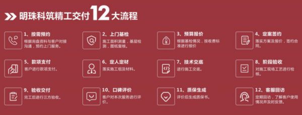 明珠科筑从技术中心、供应链中心、数字化服务中心三个维度整合多方资源,精选行业d尖辅材供应商,配套先进施工技术和数智化营销工具,制定一站式标准化流程,以9大服务、8大赋能、6大保障为服务宗旨,全力做好岩板交付服务保障。未来,明珠科筑将布局上百个网点,全面覆盖国内八大区域。