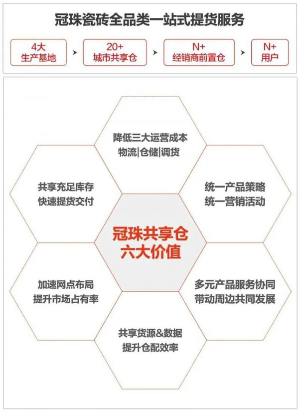 冠珠“共享仓”新模式,高能聚合品牌在全国3000+网点的价值,为地方经销商提供“武器”——共享丰富的产品款式及配套服务,并降低仓储物流成本,加速产品交付效率,帮助经销商“卸包袱”,解决产品到家“最后一公里”的问题。