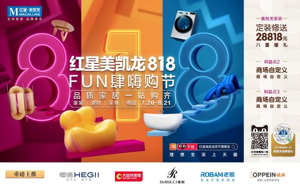 据介绍,红星818FUN肆嗨购节将聚焦品质消费,整体营销投入高达20亿,将打造为大力度、全品类、好品牌的家居购物节。全国门店,周周有活动,并通过线上线下同频共振,从流量端、服务端到产品端真正满足消费需求。