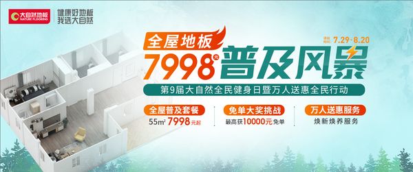在本次红星818FUN肆嗨购节中,大自然家居也重磅推出四大优惠活动:第九届大自然家居全民健身活动,大自然地板“板小侠”万人送惠服务,大自然家居全屋地板普及风暴,万元免单大奖挑战活动。