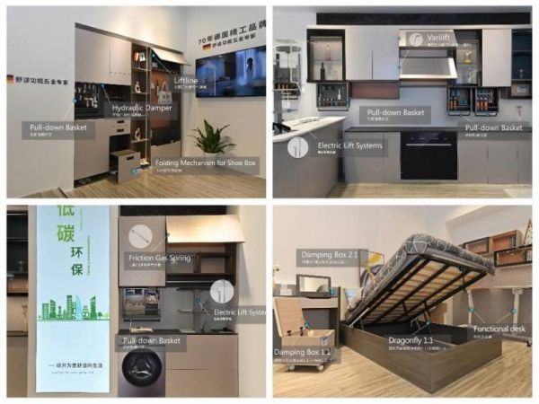 此次展会,SUSPA带来全系列气动舒适功能五金产品,如吊柜隐藏拉篮,橱柜气支撑、安全阻尼器等,赋予玄关、厨房、卧室、阳台、书房等空间的家具升降、折叠、翻转及拉伸等功能。