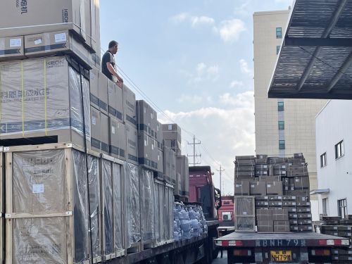 入夏以来,高温红色预警不断响起,中国厨具之都——嵊州的天气已然进入持续“烧烤”模式,骄阳炙烤着大地,阵阵热浪如蒸笼般让人喘不过气!但这仍抵不过科恩电器的生产发货热情,满满当当的货物整齐有序的码在仓库外的装卸区,等待整装出发!