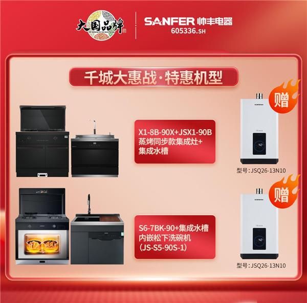 活动期间,帅丰大手笔推出X1-8B-90X蒸烤同步集成灶+JSX1-90B集成水槽以及S6-7BK-90一腔双烤集成灶+JS-S5-90S-1集成水槽内嵌松下洗碗机的套系化组合,购买任一组合还有更多福利赠送。帅丰用全新产品组合重构厨房场景,充分满足消费者对品质生活、智慧家居、健康家电的多元化需求。