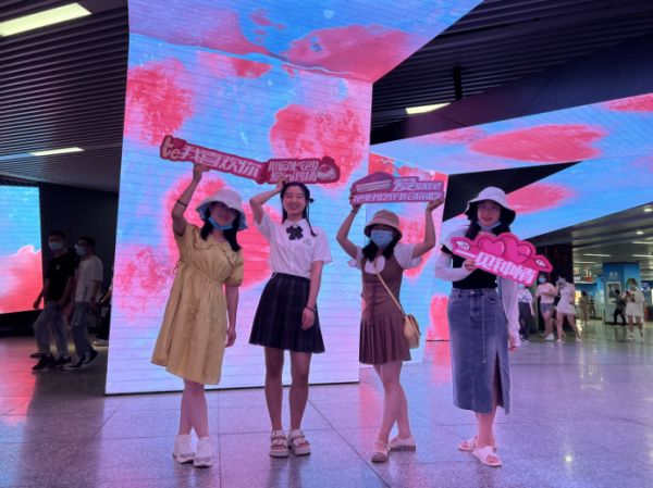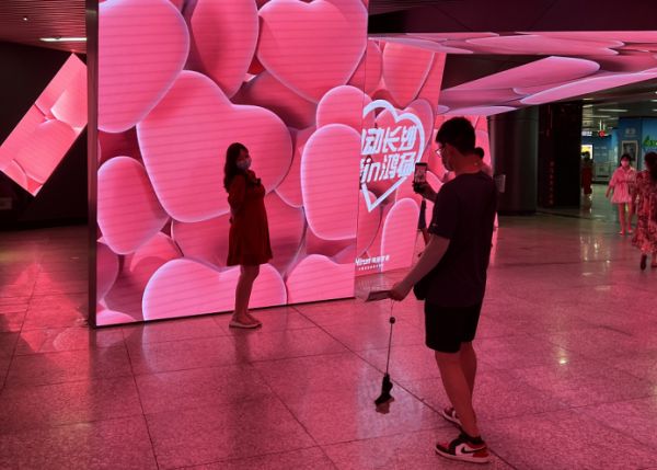 而据该地铁站工作人员介绍,这几天每天都有人专门来打卡合影。“我老婆在抖音上看见这个爱心墙,觉得特别浪漫,今天就特意拉着我来打卡了。”为了在LED爱心墙下合影留念,市民李先生一家一改平时私家车出行的方式,特意乘坐4号线来到溁湾镇地铁站,为了打卡,小俩口在此驻足了十几分钟,最终成功合影留念。