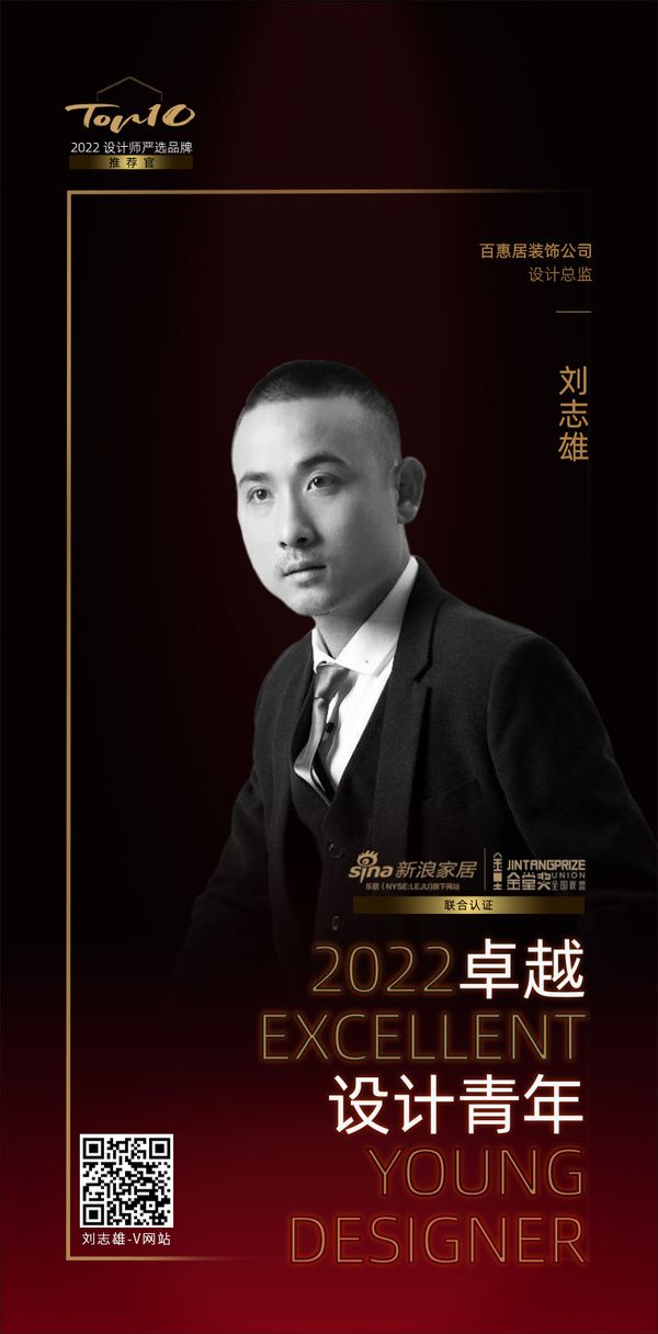 “2022卓越设计青年”由新浪家居和金堂奖全国联盟发起,是设计业界最具传播价值的年度先锋荣誉,新浪家居与金堂奖联名认证。旨在发掘和表彰室内设计领域表现卓越的杰出青年设计师。设计师刘志雄荣膺“2022卓越设计青年”称号。