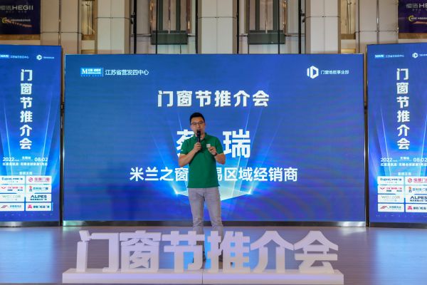 米兰之窗无锡经销商蔡瑞上台分享了经营经验和优势,并总结到:“未来的两到三年内,在门窗品类产品差异并不大的情况下,门窗行业的服务会比产品更重要。”